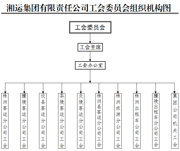 湘運(yùn)集團(tuán)有限責(zé)任公司系湖南省株洲地區(qū)最具規(guī)模、舉足輕重的專業(yè)化道路運(yùn)輸龍頭企業(yè),是以運(yùn)輸產(chǎn)業(yè)為主,房地產(chǎn)開發(fā)、商貿(mào)餐飲等為輔的多元化經(jīng)營的企業(yè)集團(tuán)。集團(tuán)公司設(shè)工會委員會,下設(shè)9個(gè)二級工會,現(xiàn)有工會會員1026人,員工入會率達(dá)100%。