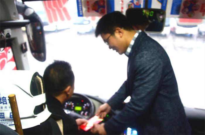 凌晨6:50時(shí),董事長(zhǎng)一行來(lái)到了長(zhǎng)途汽車(chē)站,“同志們,辛苦了,大家新年好!我給大家拜年了!”董事長(zhǎng)跟員工們一一握手問(wèn)好,向員工們送上了祝福。員工們自發(fā)的站成一排,向董事長(zhǎng)問(wèn)好,拜年。7:18時(shí),董事長(zhǎng)登上發(fā)往長(zhǎng)沙的班車(chē),給旅客和司機(jī)送上了新年的祝福,并囑咐司機(jī)下雨一定要注意行車(chē)安全,并目送班車(chē)駛出車(chē)站。